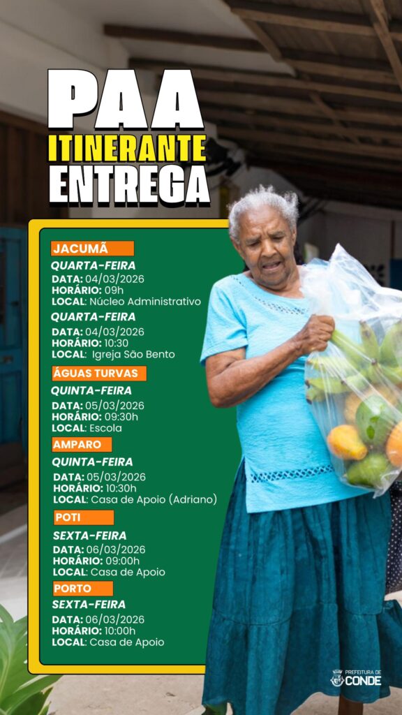 A Prefeitura de Conde iniciou mais uma etapa do PAA Itinerante, levando a distribuição de alimentos diretamente às comunidades do município. A ação garante acesso mais fácil às famílias cadastradas e fortalece a agricultura familiar, base importante da economia local.