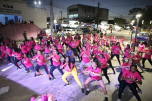 No final da tarde, as mulheres que participam dos Grupos dos CRAS Ademário Régis, Centro e Pousada, reuniram-se na Praça Pedro Alves para um grande aulão de ritmos que foi aberto a toda a população. Os grupos hoje contam com mais de 200 mulheres que também participam entre outras atividades, dos cursos oferecidos pelo Centro de Oficinas, da Secretaria de Desenvolvimento Social (SEDES).