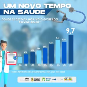 O trabalho humanizado que a Secretaria de Saúde de Conde vem realizando com a população, tem alcançado resultados bastante positivos nos indicadores direcionados a Atenção Primária no município, por meio da divulgação dos dados referentes ao segundo quadrimestre de 2023 do programa Previne Brasil, com nota 9,7 para o serviço na cidade. O Previne Brasil avalia os indicadores da atenção primária à saúde da população e o Conde vem elevando suas notas desde o primeiro quadrimestre de 2021, quando atingiu nota 4,16.