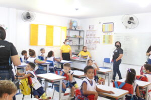 Visitantes, palestrantes, coordenadores do Educar Pra Valer e a equipe da gestão de educação de Conde estiveram em 3 unidades escolar: Escola Municipal de Ensino Fundamental (EMEF) Albino Pimentel, EMEF Manoel Paulino e EMEF Marina Eleotério.