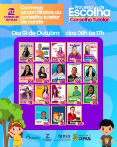 Confira também os números e os candidatos às vagas do Conselho Tutelar de Conde.