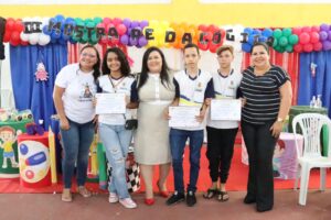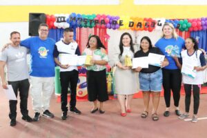 Para encerramento do dia, foi realizada a solenidade de premiação dos estudantes vencedores do 3º Concurso de Redação e das Olimpíadas de Inglês, com destaque para um empate no 1ª lugar, onde três alunos da EJA tiveram nota máxima na olimpíada.
