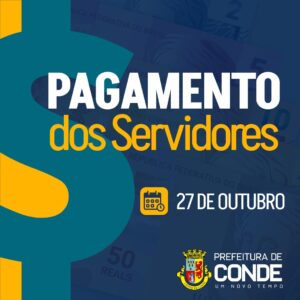 A Prefeitura de Conde adiantou o pagamento do mês de outubro para o dia 27 em homenagem ao Dia do Servidor Público, celebrado no próxima sexta-feira (28). Reforçando seu compromisso de valorização dos servidores municipais desde o início da gestão, a prefeita Karla Pimentel realiza o pagamento dentro do mês trabalhado.