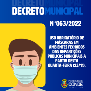 o uso de máscaras de proteção facial em ambientes fechados nas repartições públicas do Município de Conde.